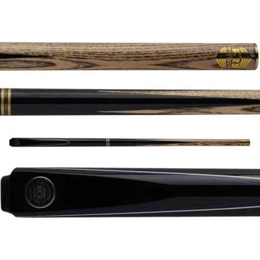This cue is crafted with a North American ash shaft and butt with ebony points on the forearm and blue and white machine spliced soft points in the sleeve area. The brass collar, joint and ferrule provide the solid hit with good feel preferred by many players. Overall, this is an affordable snooker cue that delivers unparalleled performance.