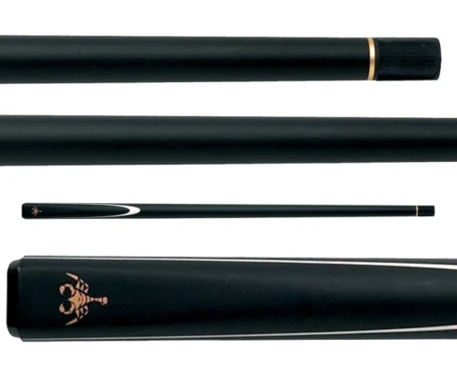 This Scorpion pool cue stick combines quality craftsmanship with a very affordable price. Simple in design, this cue has a black forearm and elongated oval design in white with the Scorpion logo in gold at the butt end. This cue has a European taper and an Elk Master tip, making it is a great opportunity to hone your snooker game at an affordable price.Weight Changes:· Weight changes are impossible to do on Scorpion cues because the bumper is sealed in to protect the cue from outside conditions.